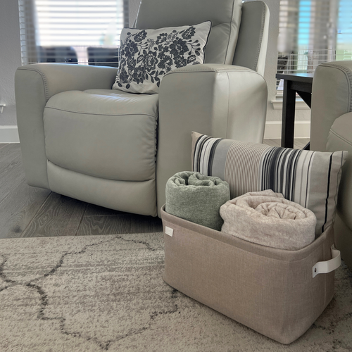 Whether placed beside the sofa, under a console, or tucked into a cozy corner, this basket blends seamlessly into your home while keeping life's extras within reach.